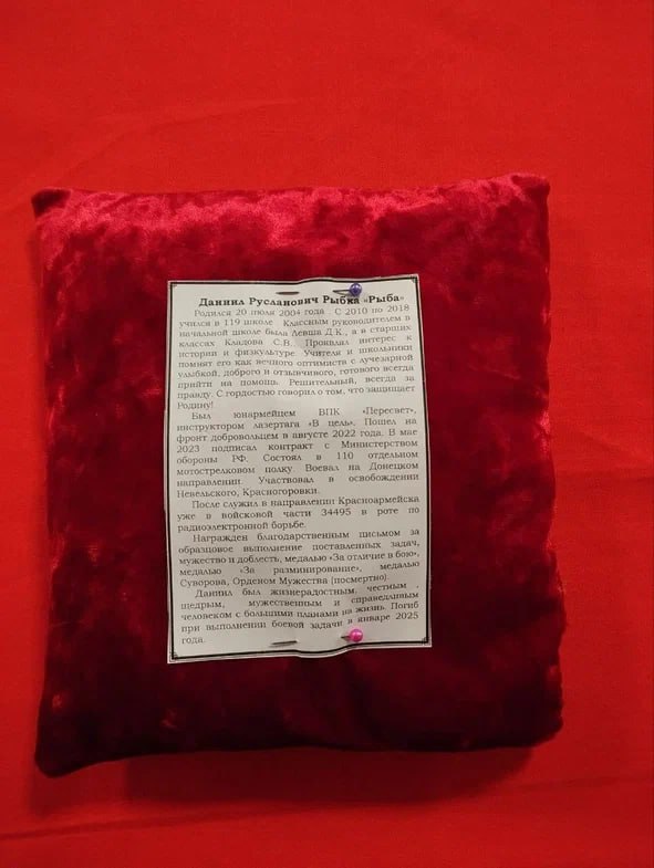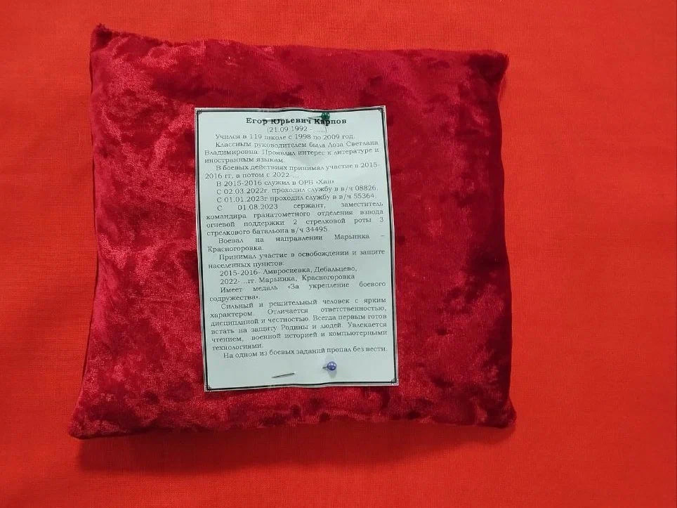 На каждой парте была установлена табличка с именем, фотографией и краткой историей о жизни погибшего защитника. Шесть героев Родины — Дмитрий Солодухин «Бизон», Олег Акимов «Лексус», Владимир Андреев, Данил Рыбка, Андрей Трунов, Егор Карпов в прошлом ученики разных школьных выпусков, но не зависимо от возраста и жизненного опыта, они руководствовались чувством долга, справедливости и духом патриотизма.