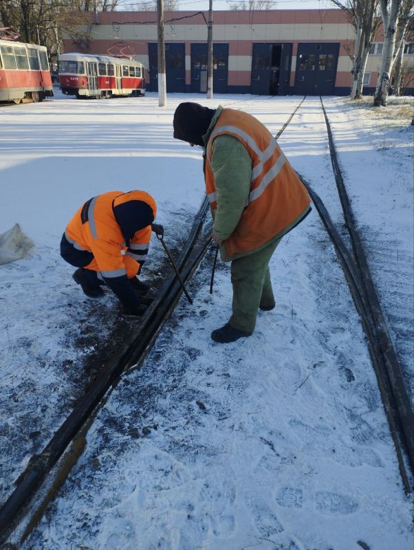 Специалисты службы по обслуживанию и ремонту пути МУП «МАРИУПОЛЬТРАНС» произвели замер и регулировку трамвайного пути на кривых участках после понижения температуры, а так же очистку и ремонт спецчастей.