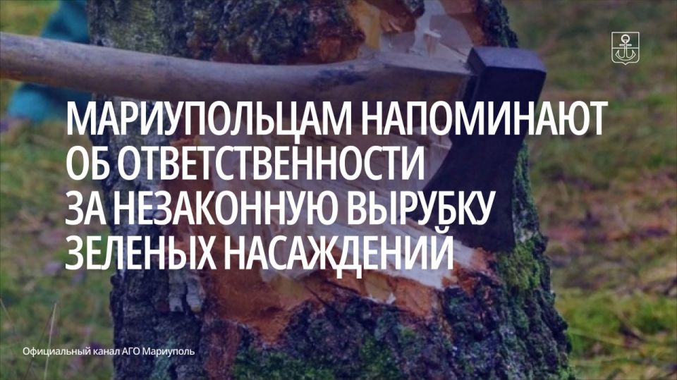 Сектор экологии АГО Мариуполь напоминает, что по Закону ДНР «Об административных правонарушениях» вырубка или уничтожение деревьев и кустарников без получения соответствующих разрешений является правонарушением.