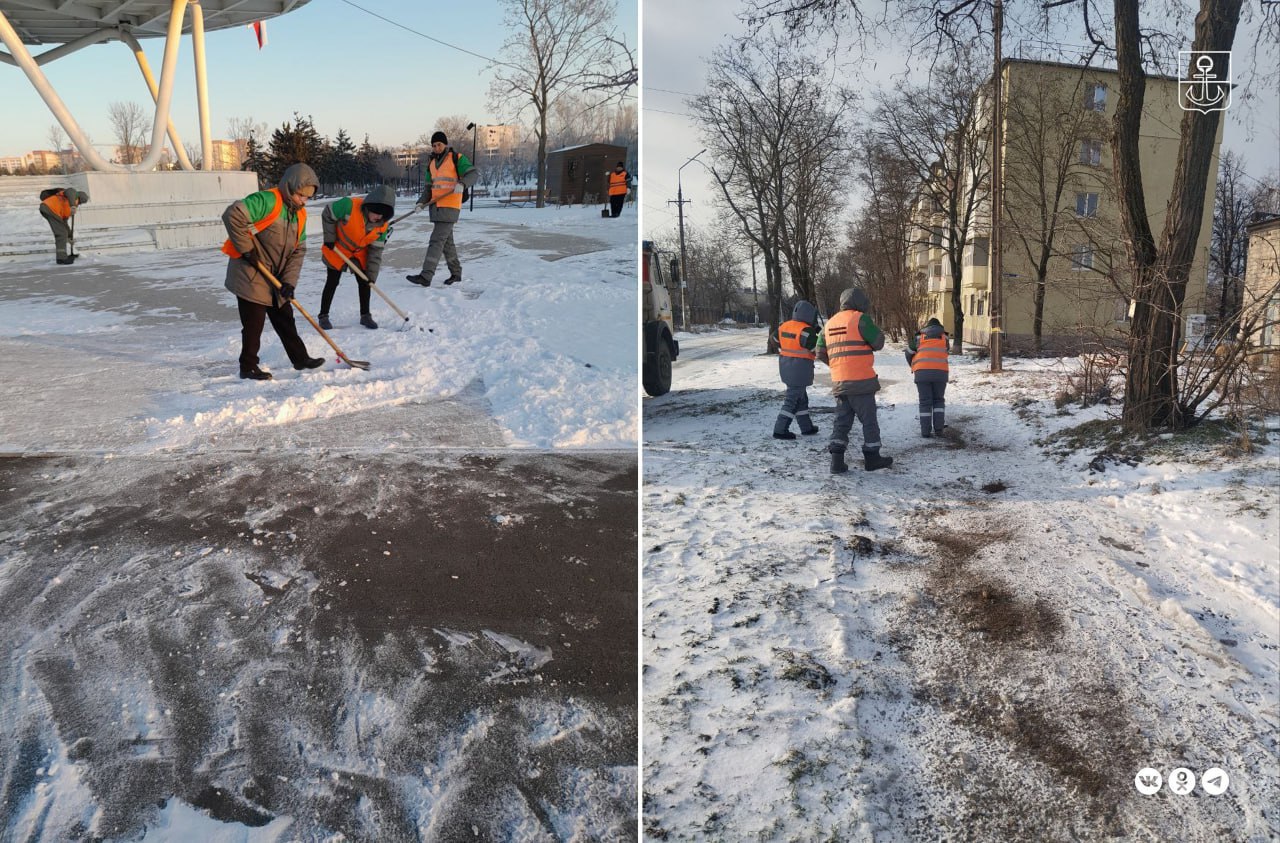 Во всех районах города коммунальщики расчистили от снега и наледи территории общего пользования, обработали тротуары противогололедной смесью.