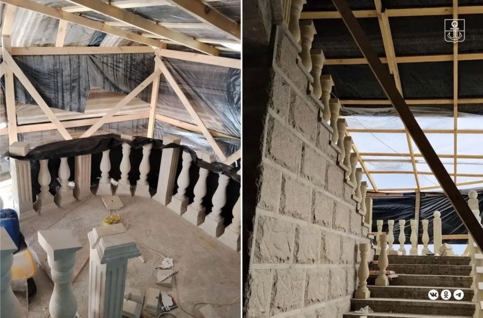 Также строители начали монтаж балюстрад на лестнице.