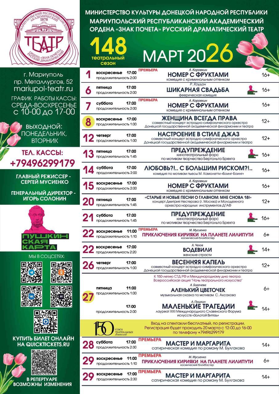 Мариупольский драматический театр анонсировал репертуар спектаклей на март