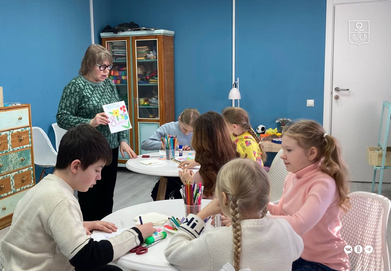 На мастер-классе «В марте есть такой денёк» в библиотеке им. А.С. Пушкина дети с любовью и теплотой вырезали из бумаги, клеили и рисовали уникальные поздравления для своих самых близких людей.