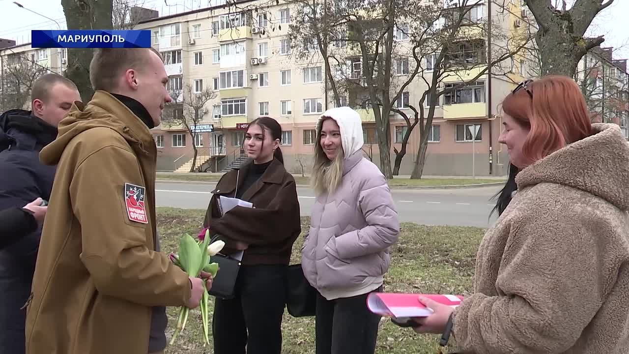 Представители молодежки Народного фронта поздравили мариупольчанок с наступающим 8 Марта! 06.03.2026