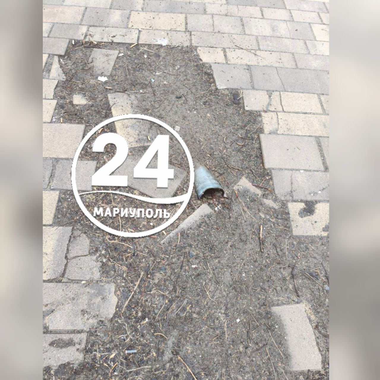 ПИШУТ ЧИТАТЕЛИ. Местные жители просят убрать остатки боеприпаса в Жовтневом районе Мариуполя: До сих пор на дорожке по адресу пр. Ленина, 82 торчит кончик от снаряда