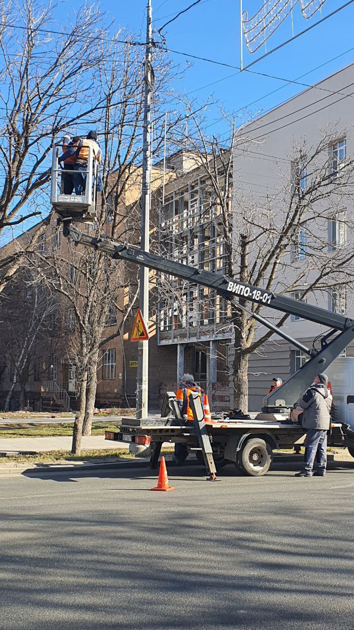 В центре Мариуполя специалисты восстанавливают работу светофорного объекта