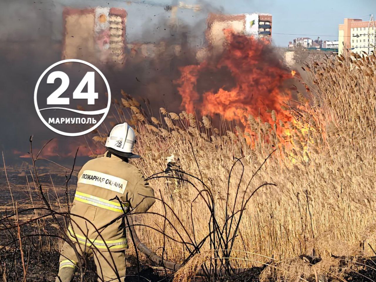 Видео тушения возгорания камыша