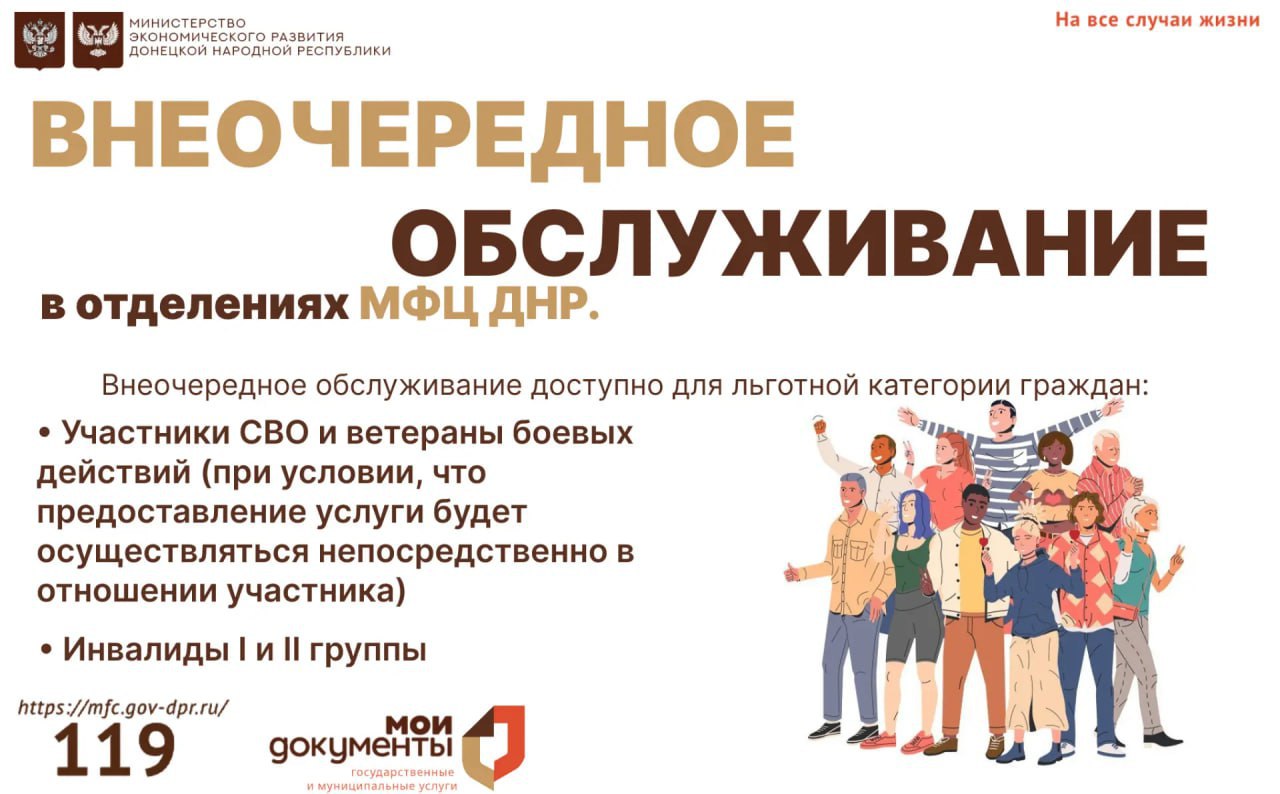 В центрах "Мои документы" предусмотрено внеочередное обслуживание для лиц, относящихся к льготным категориям.