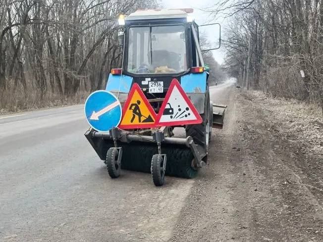 Выполнили уборку наносного грунта у бордюрного камня, а также произвели механическую очистку покрытия на автодорогах:
