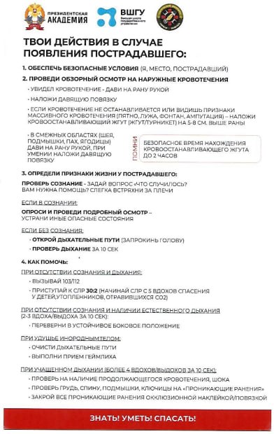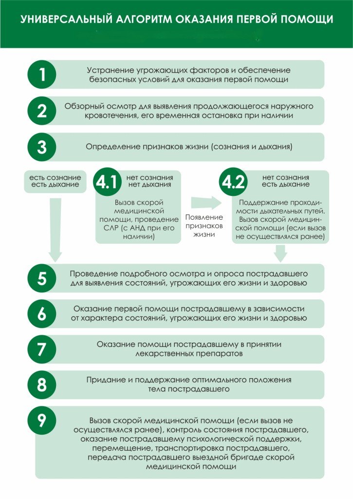 Уважаемые жители!Предлагаем вам изучить универсальный алгоритм оказания первой помощи пострадавшему.Какие действия стоит предпринять и как не навредить, читайте в памяткеБерегите себя и своих близких!