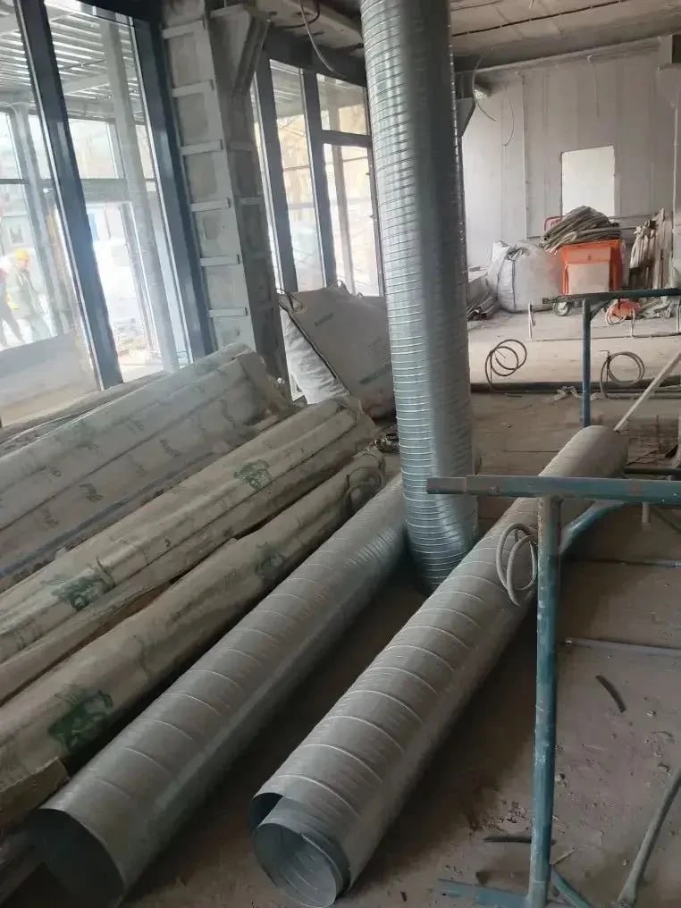 Кроме того, строители выполняют утепление вентиляционных коробов, занимаются штукатуркой стен и обустройством кровли в административно-бытовом корпусе, проводят армирование и заливку стяжки пола.