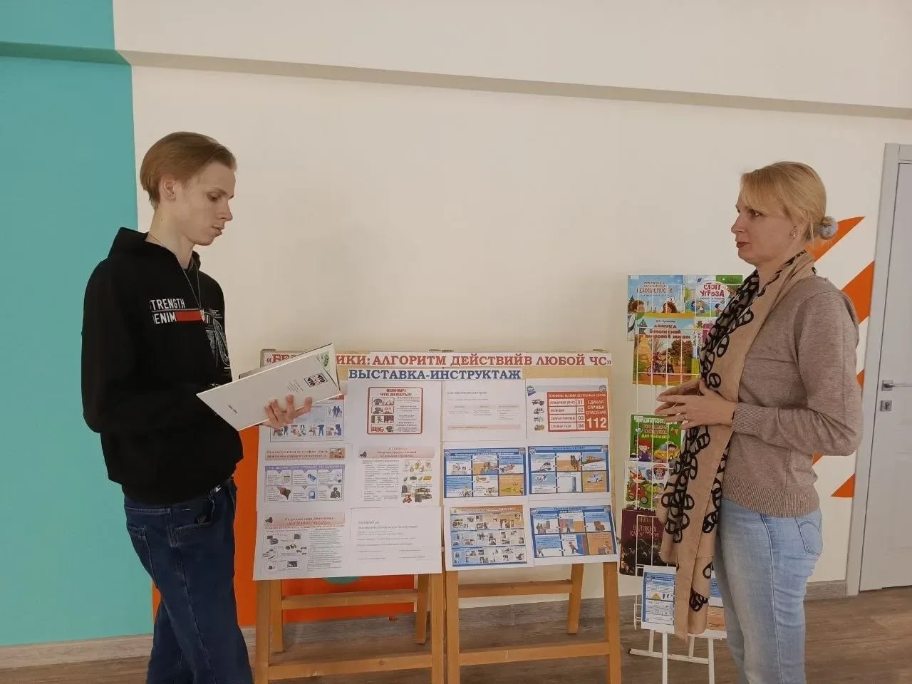 Помимо познавательной и художественной литературы вниманию посетителей представлены чёткие схемы, которые помогают усвоить последовательность действий в любой чрезвычайной ситуации.