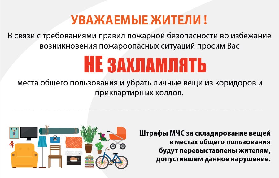 Напоминаем: захламление балконов, лоджий, лестничных клеток и общих коридоров — не просто вопрос порядка, а нарушение правил пожарной безопасности.