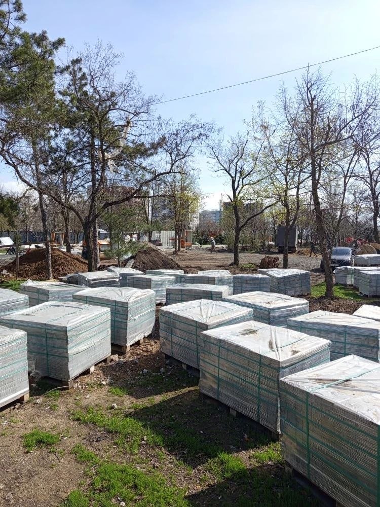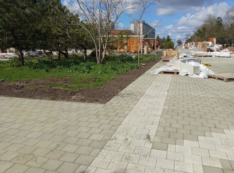 Так сейчас выглядит новый сквер, который благоустраивает Тульская область на пересечении пр. Победы и пр. Ленинградского. Открыть его обещали ко Дню Победы. Скоро там можно будет отдыхать в тени навесов и прогуливаться по ровным дорожкам с новой тротуарной плиткой.