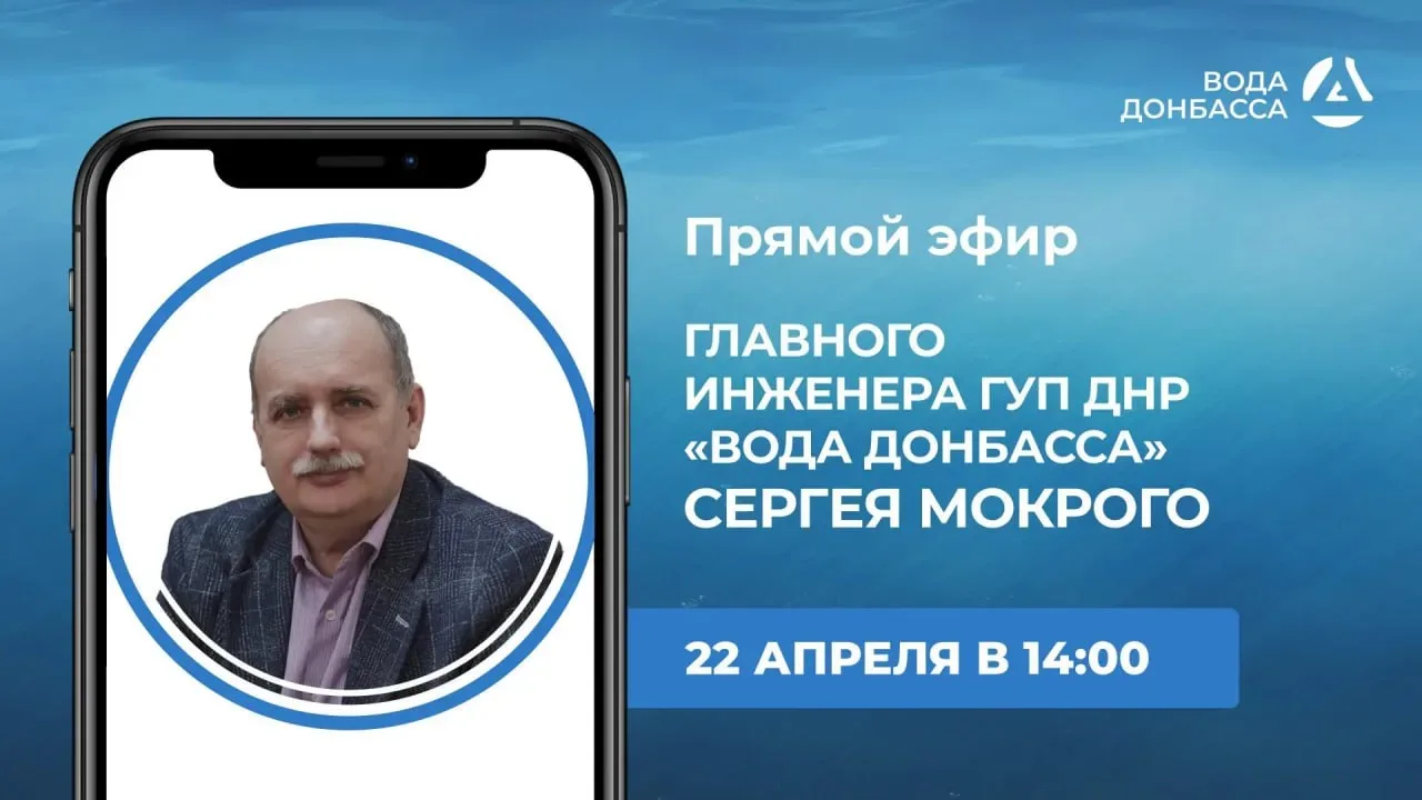 22 апреля в 14:00 главный инженер предприятия «Вода Донбасса Сергей Мокрый проведет прямой эфир