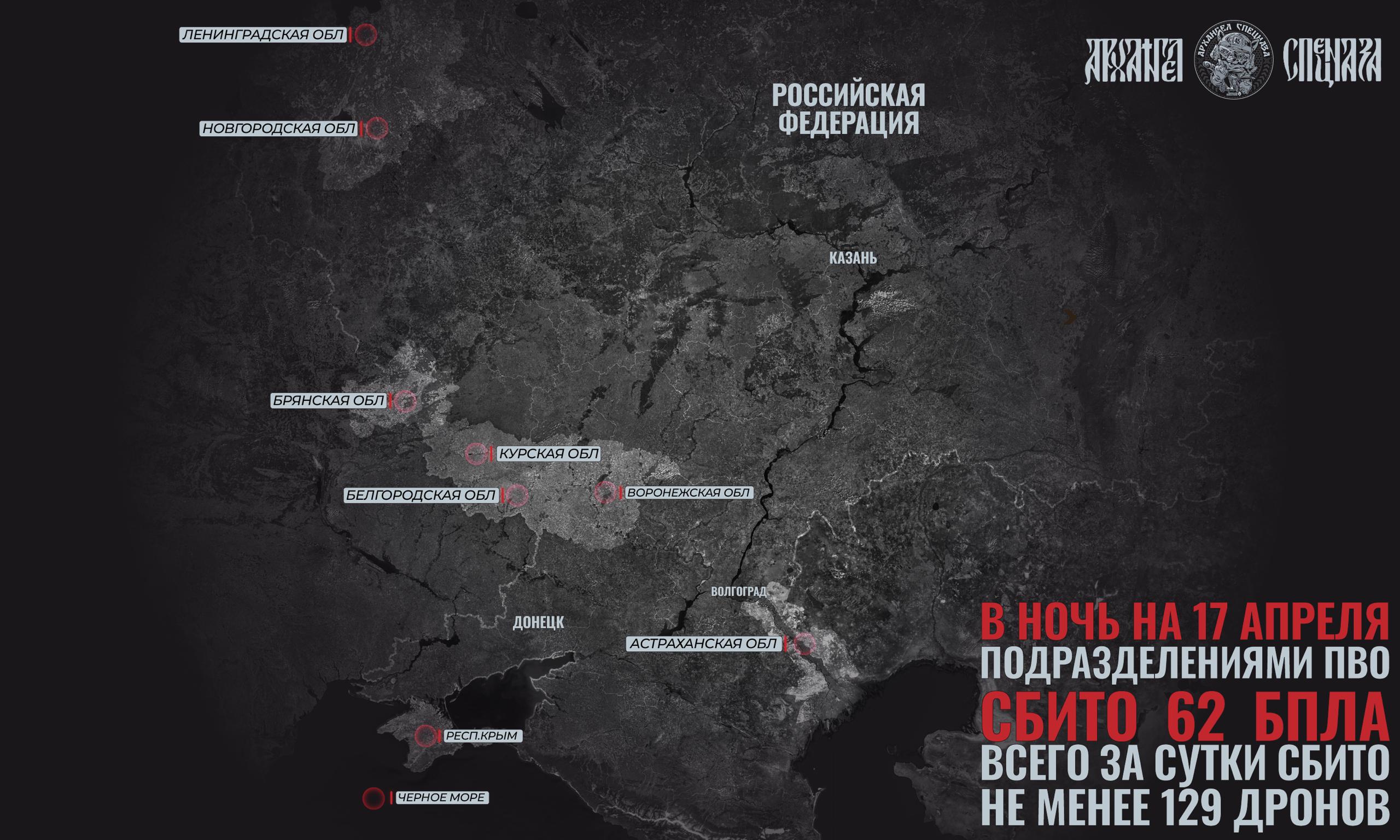 При этом за ночь было сбито около 62 беспилотников. В дневное время вчера также была активная работа: 48 в светлое время суток и ещё свыше десятка ближе к вечеру.