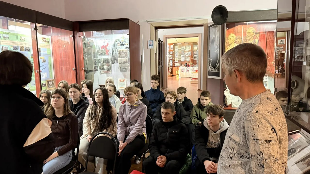 20 апреля на базе музея истории города Харцызска состоялась встреча учащихся общеобразовательных учреждений с ветераном боевых действий, состоящим на сопровождении в местном отделении филиала фонда «Защитники Отечества» Алексеем Хомяковским.