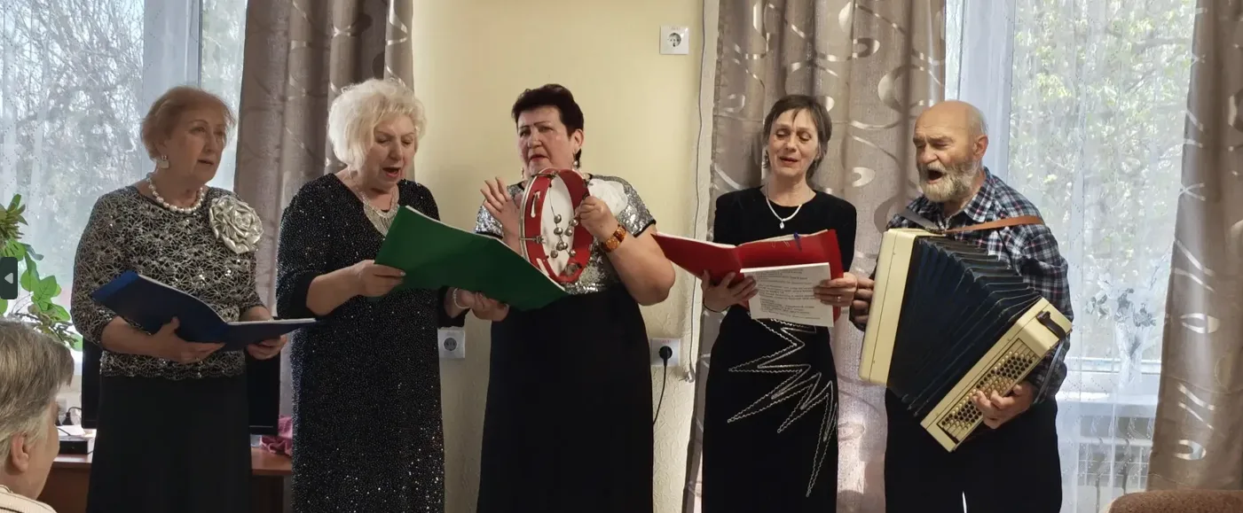 На днях ансамбль «Самоцветы», состоящий из подопечных Центра, дал концерт для постояльцев Мариупольского дома-интерната №1. Любимые песни «Смуглянка», «Кораблик», «Черный кот» и «Белая черемуха» нашли отклик в сердцах постояльцев и сотрудников интерната.