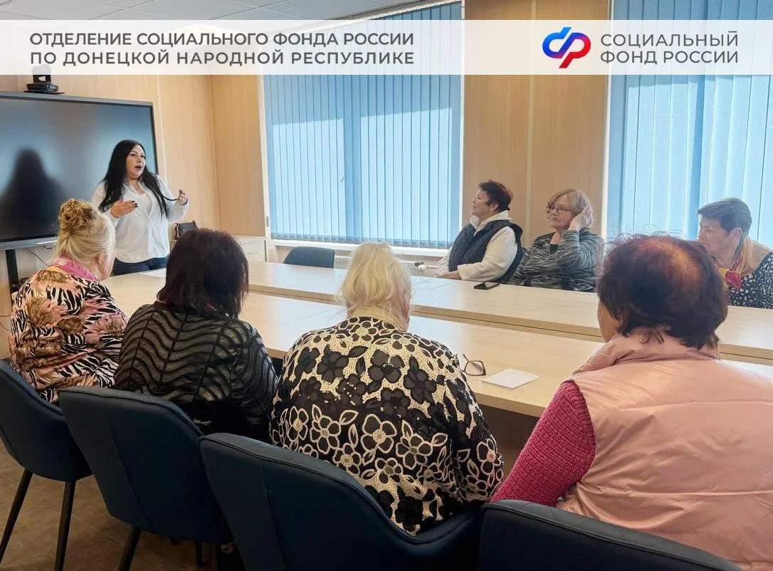 Об аспектах формирования пенсионных прав, условиях назначения, перерасчета и доплат к пенсии гостям Центра общения старшего поколения Жовтневого района Мариуполя рассказала заместитель начальника управления установления пенсий Отделения Соцфонда по ДНР Елена Солохина.