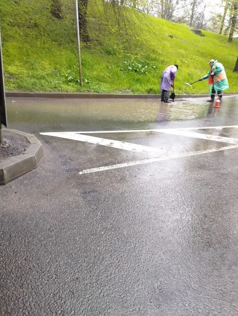 Здесь коммунальщики вручную проводят дополнительную очистку колодцев ливневой канализации, чтобы обеспечить беспрепятственный сток воды, минимизировать риск подтопления дорожного полотна и гарантировать безопасное движение транспорта.