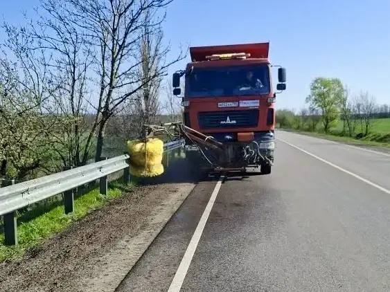 Кроме того, продолжались мероприятия по очистке дорожного покрытия от наносного грунта и посторонних предметов, очистке дорожных знаков, покосу травы на сети автодорог республики.