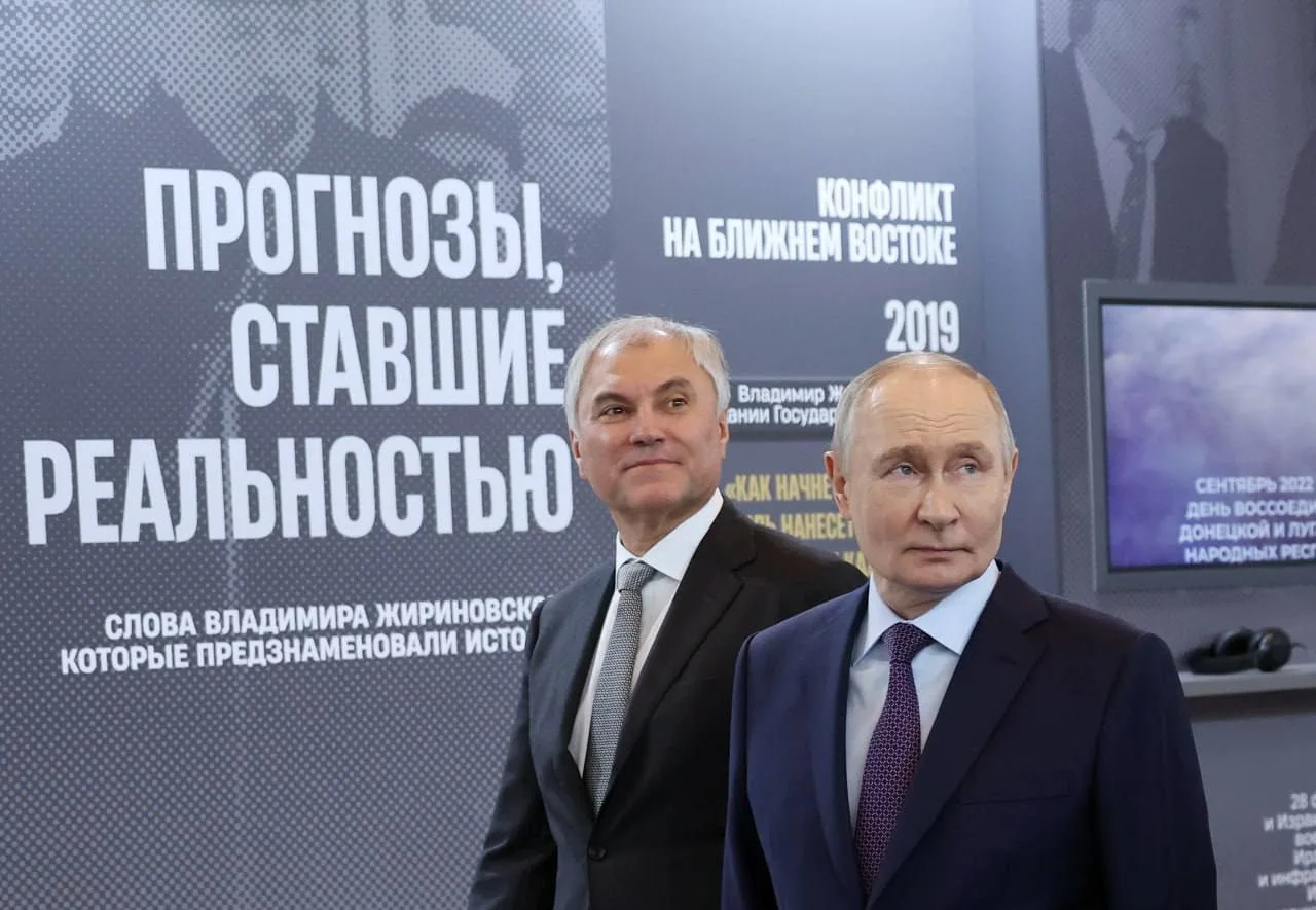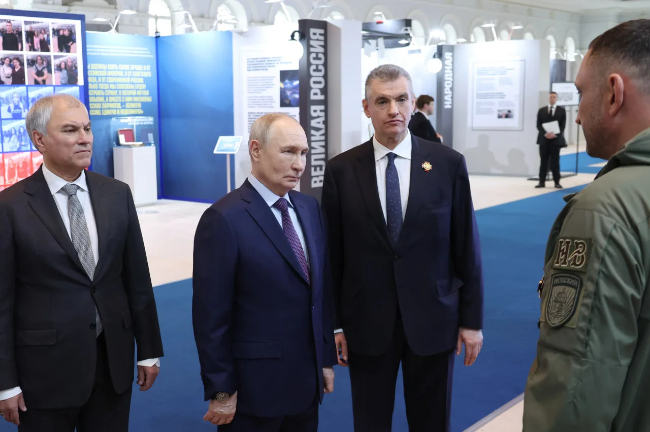 Президента сопровождали Председатель Госдумы Вячеслав Володин и глава ЛДПР Леонид Слуцкий.