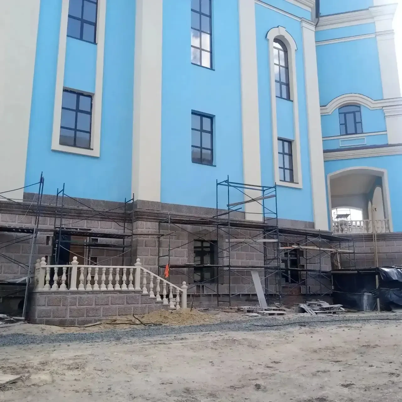 Петербургские специалисты завершают кровельные работы и монтаж гранитной плитки на фасаде Собора Покрова Божьей Матери.