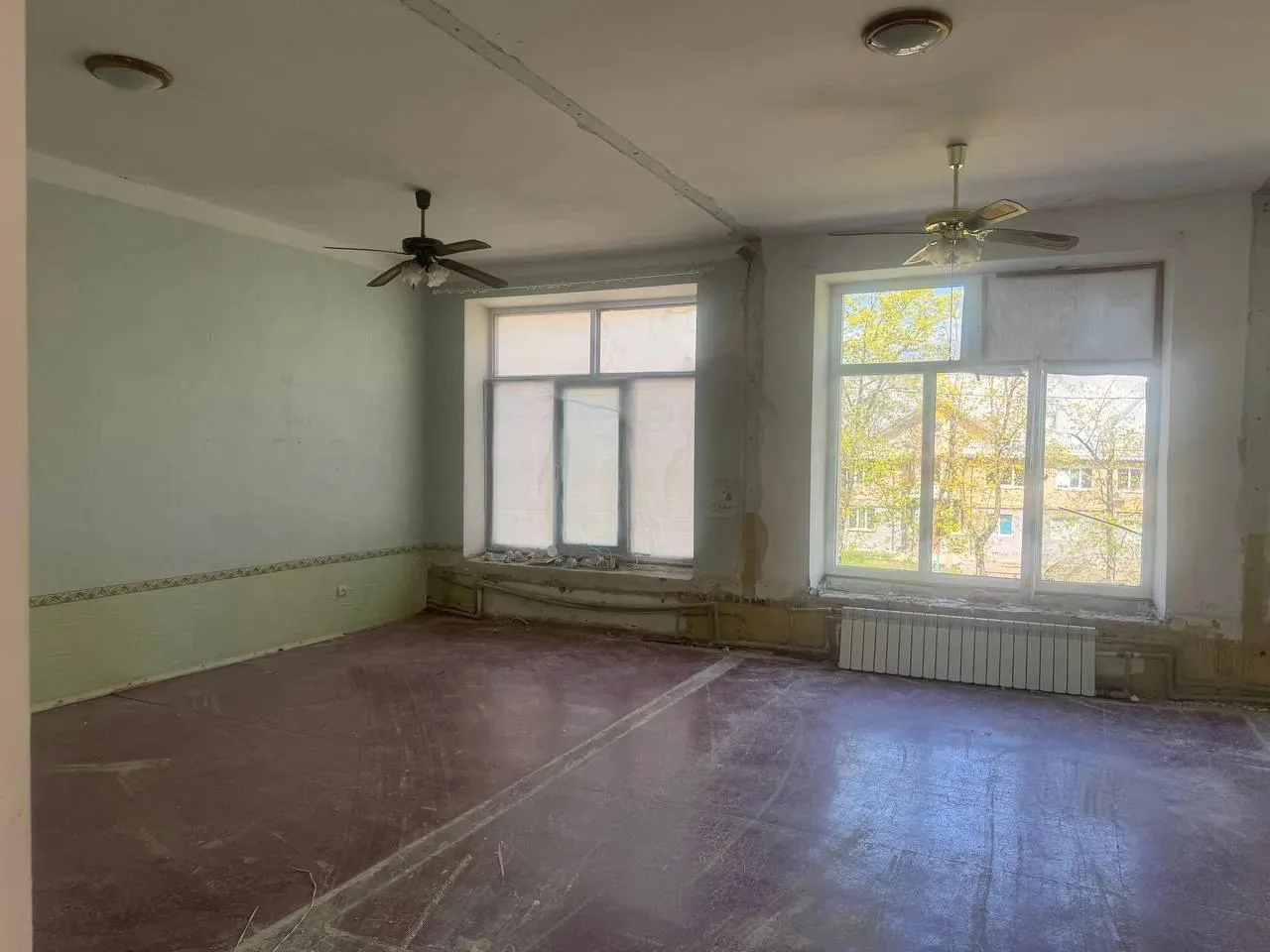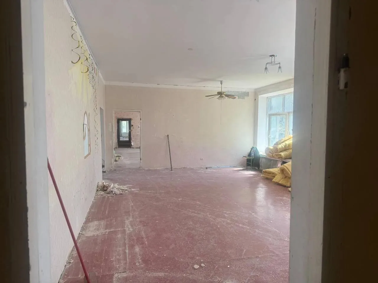 Внутри центра на переулке Киевском рабочие провели демонтаж для последующих ремонтных работы внутри здания.