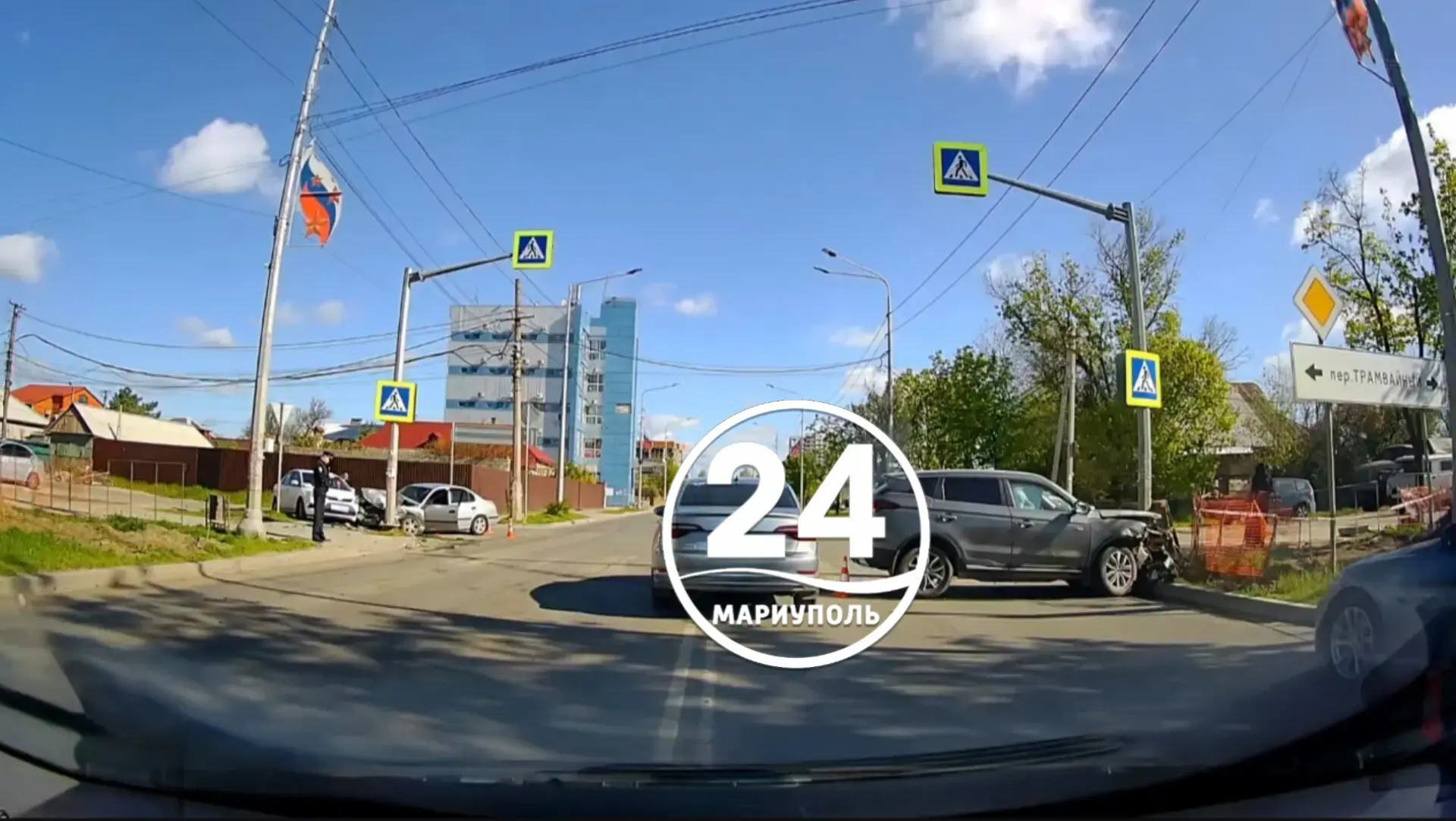 ДТП с участием трёх автомобилей произошло на пересечении переулка Трамвайного с проспектом Строителей
