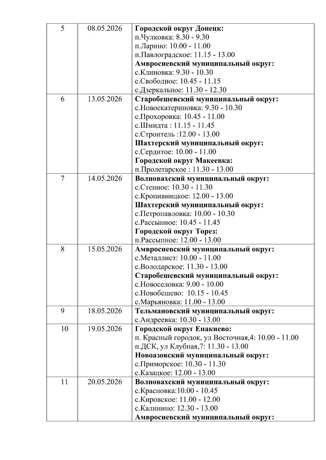 Минздравом ДНР утвержден график выезда автоаптеки на май в населенные пункты городских округов Донецк, Мариуполь, Макеевка, Дебальцево, Енакиево, Торез, а также в Амвросиевский, Волновахский...