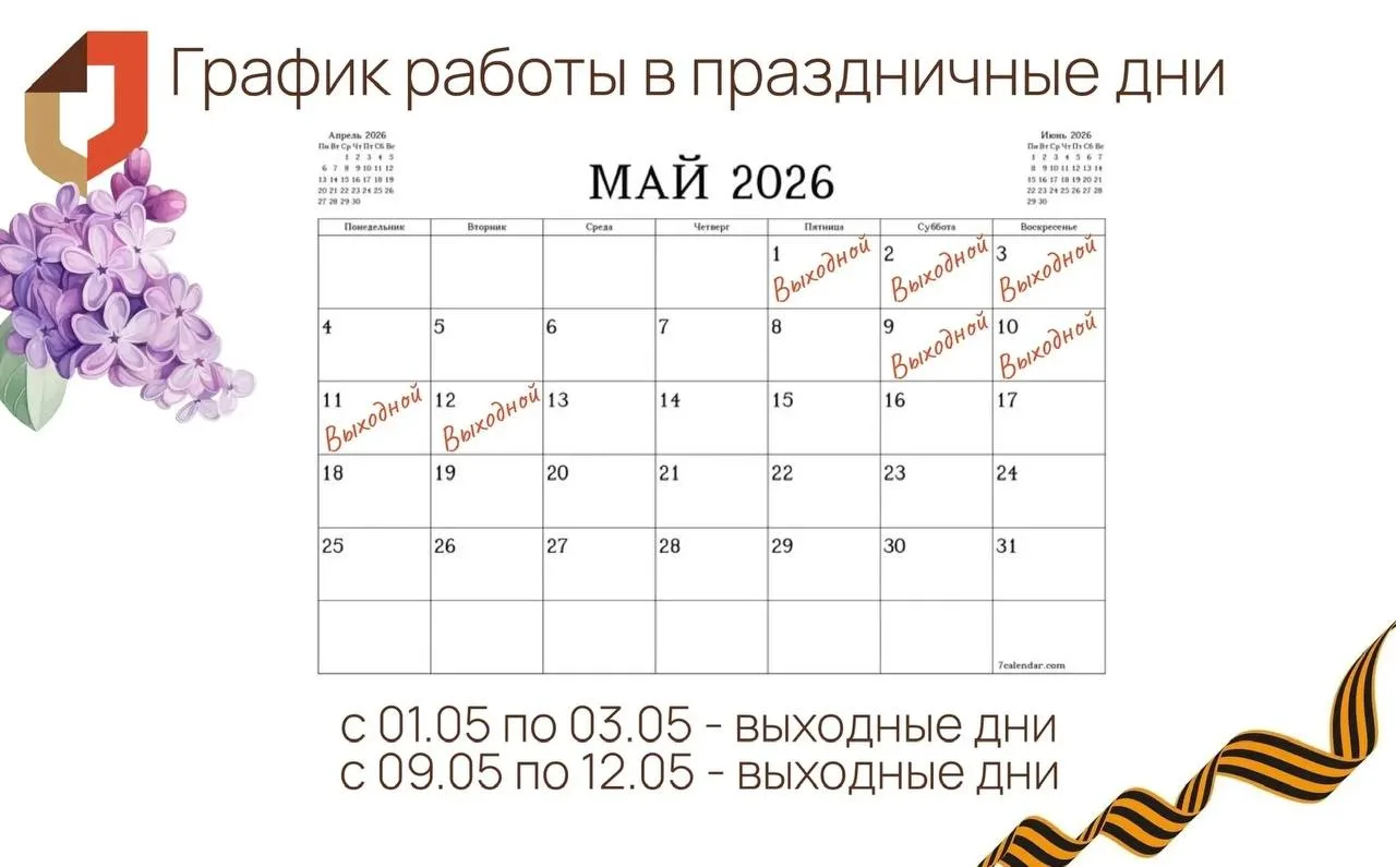1 мая - выходной2 мая - с 8:00 до 16:003 мая - выходной9 мая - выходной10 мая - выходной11 мая - с 8:00 до 16:0012 мая - с 8:00 до 16:00Выездные бригады работают ежедневно, вызовы принимает колл-центр 1-500 (с Феникса) или +79499658772 и +79499658771В...