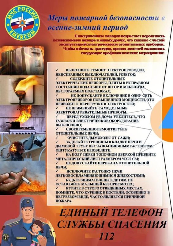 В осенне-зимний период основная доля пожаров приходится на жилой сектор.Наиболее распространенными причинами их возникновения служат:- неосторожное обращение с огнем;- нарушение правил устройства и эксплуатации электрооборудования;- нарушение правил...